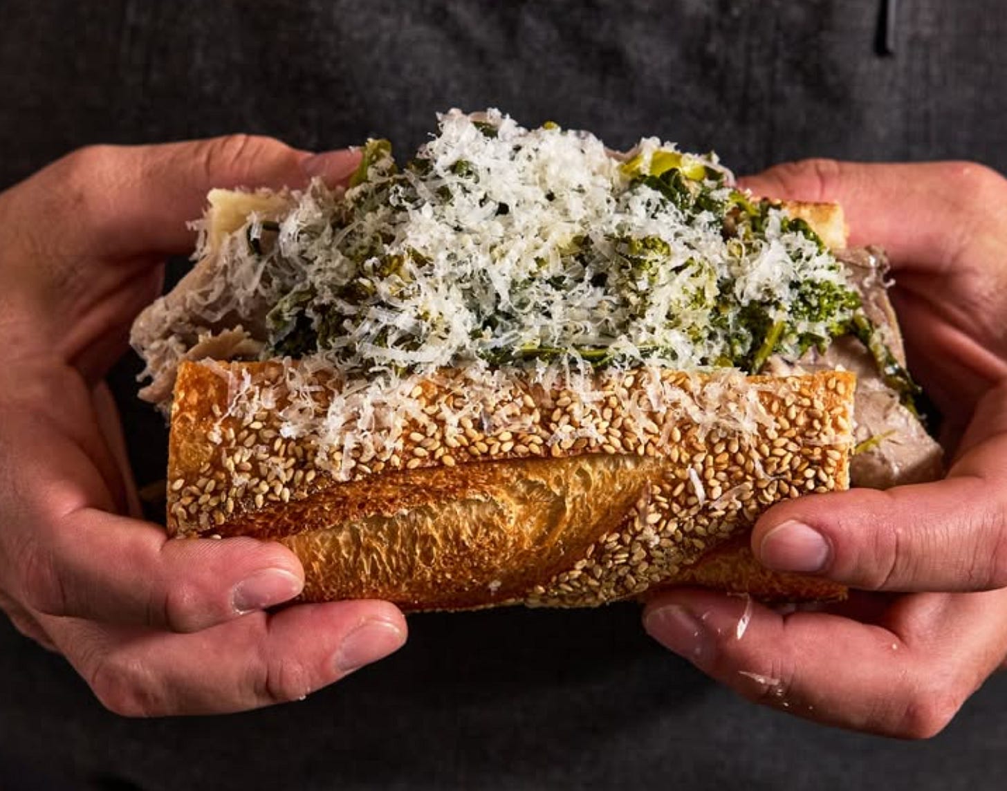 Our friends on the East coast sometimes do things right, like roast pork sandwiches from New Jersey. According to Dianne de Guzman at SF Eater, the founder Matthew Kosoy worked at a hoagie shop when he was 15 and “has an emotional attachment” to the classic sandwich. The pork is prepared over three days, building deep flavor.