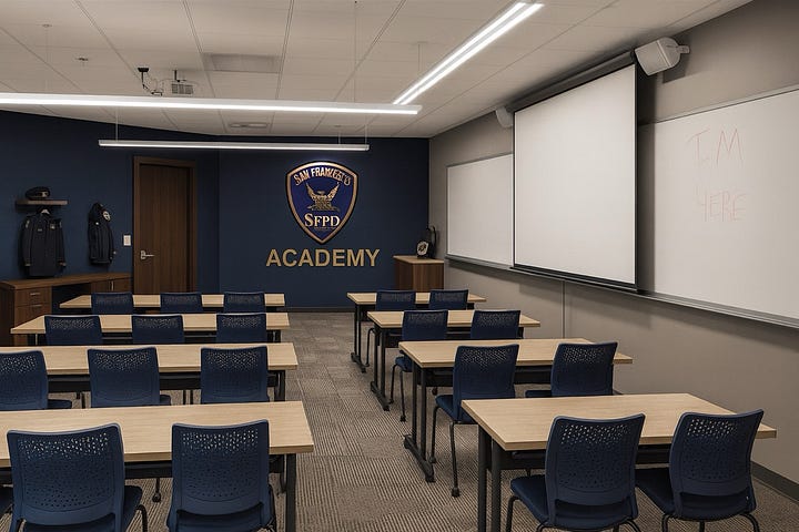 San Francisco’s police academy is falling apart. We detailed its problems in an earlier post: a crumbling 1960s elementary school on Amber Drive, filled with asbestos, seismically unsafe, with no gym, no mock training village, and too few classrooms. Cadets sometimes take exams sitting on the floor.