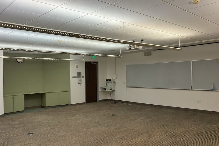 Fortunately, there’s a ready-made alternative hiding in plain sight: the currently unused sixth floor of the Westfield San Francisco Centre. For years, San Francisco State University ran a downtown campus there but it has since shut down. We visited the space and were blown away by how it could fit the needs of a new SFPD Academy. The campus has large, expandable classrooms clustered around Westfield's glass‑walled atrium.